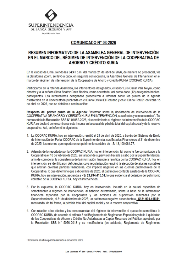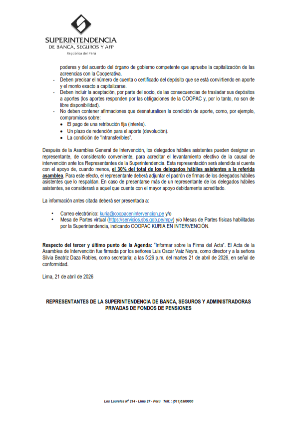 Atención a Consultas: kuria@coopacenintervencion.pe