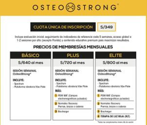 - 25% de dscto en todas las membresías, desde la mensual hasta la anual en base al siguiente tarifario: